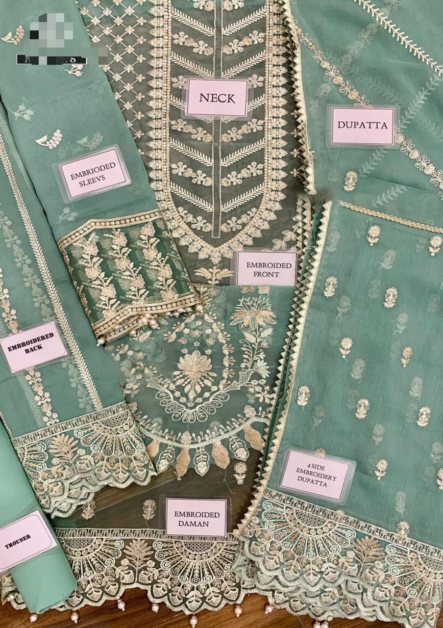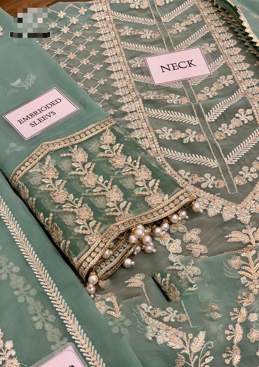 The Afroze Shenhai Chiffon Wedding Collection brings you one of the most elegant and highly demanded designs, crafted with luxury detailing for weddings and festive occasions. This 3-piece unstitched suit showcases premium chiffon with heavy embroidery, sequin embellishments, and delicate finishing touches.