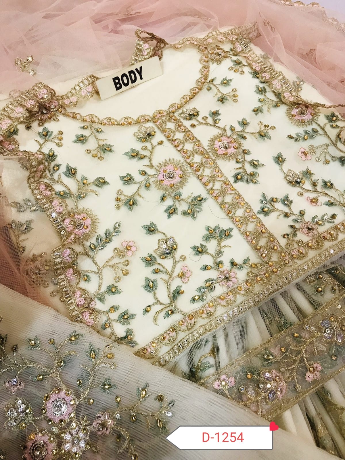 Heavy embroidered front body with delicate handwork and pearl embellishments