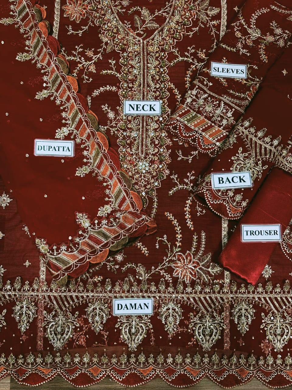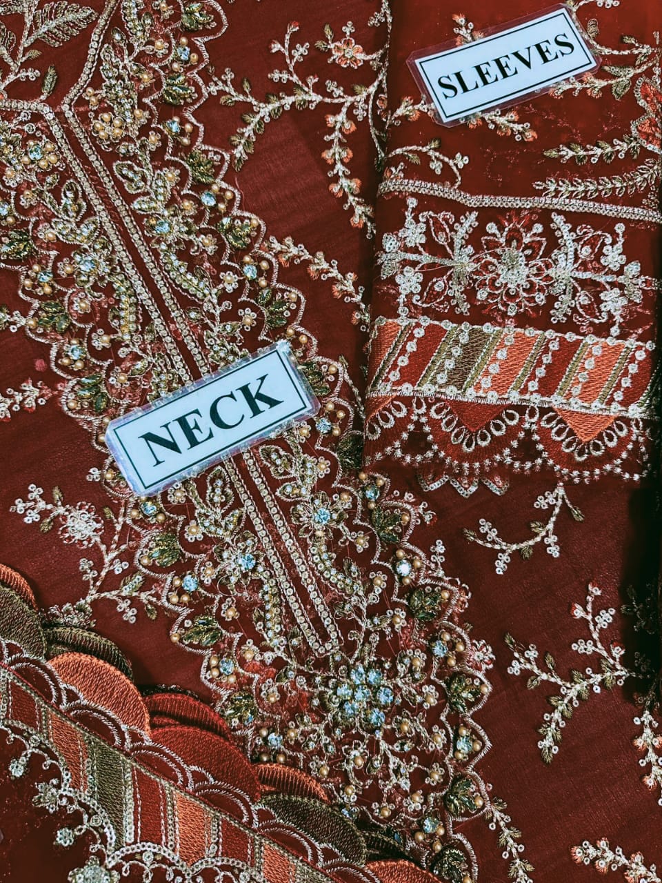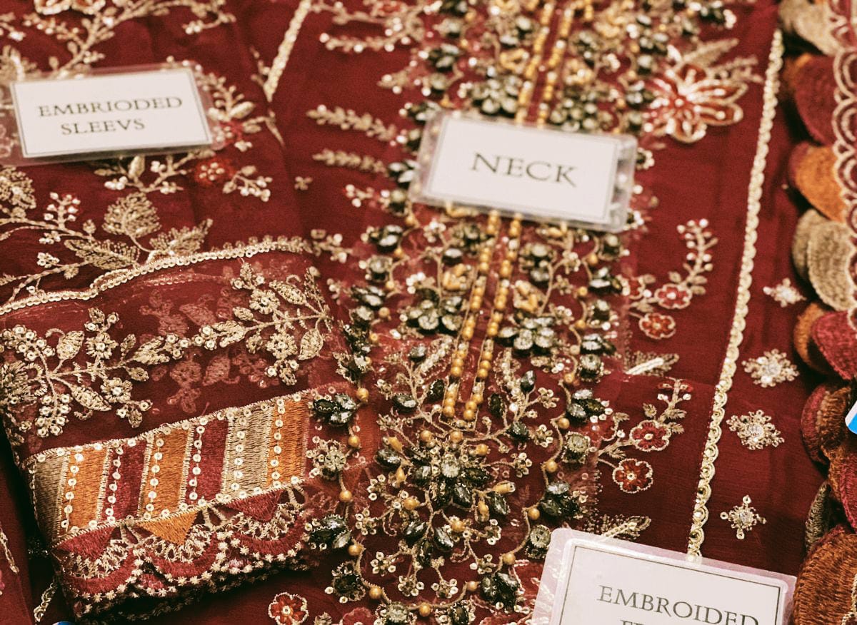 • Fully embroidered sleeves with spangle work and matching sleeve borders